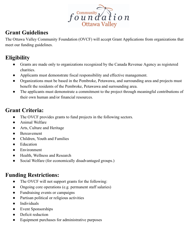 2026 Ottawa Valley Community Foundation Grant Opportunities
