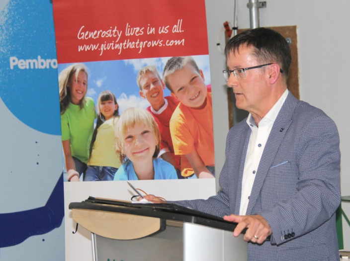 Matt Bradley, chairman of the Ottawa Valley Community Foundation board addresses those in attendance at the group's AGM held earlier this summer, at which over $94,000 was dispensed to numerous community organizations, clubs, and individuals. Photo by Anthony Dixon /Pembroke Observer and News